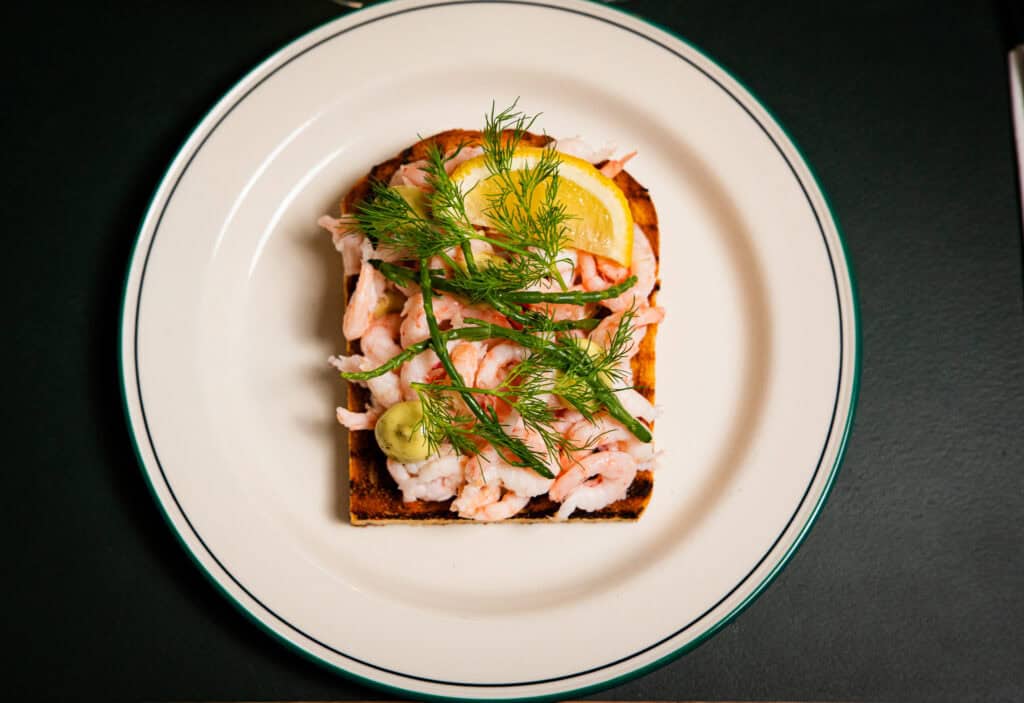 Vi prioriterer skånsomt fangede fisk. Kabyssen serverer lige nu dette udvalg af smørrebrød med fisk og skaldyr