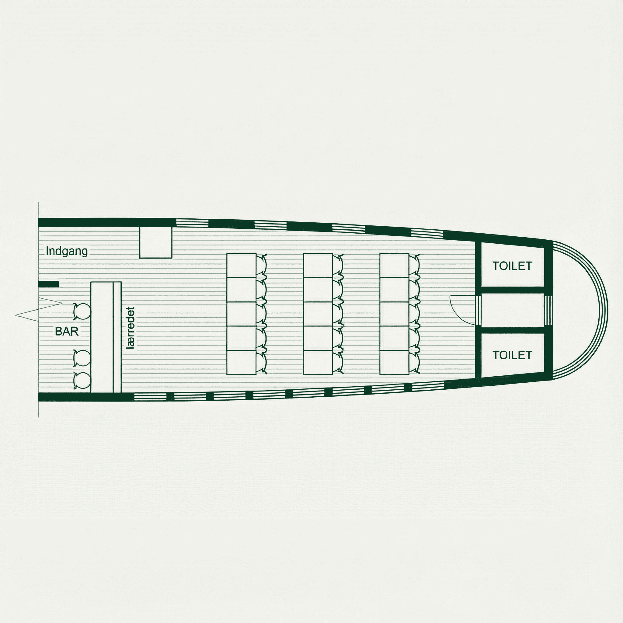 Sådan kan I sidde på vores færge – til selskaber, møder og fester